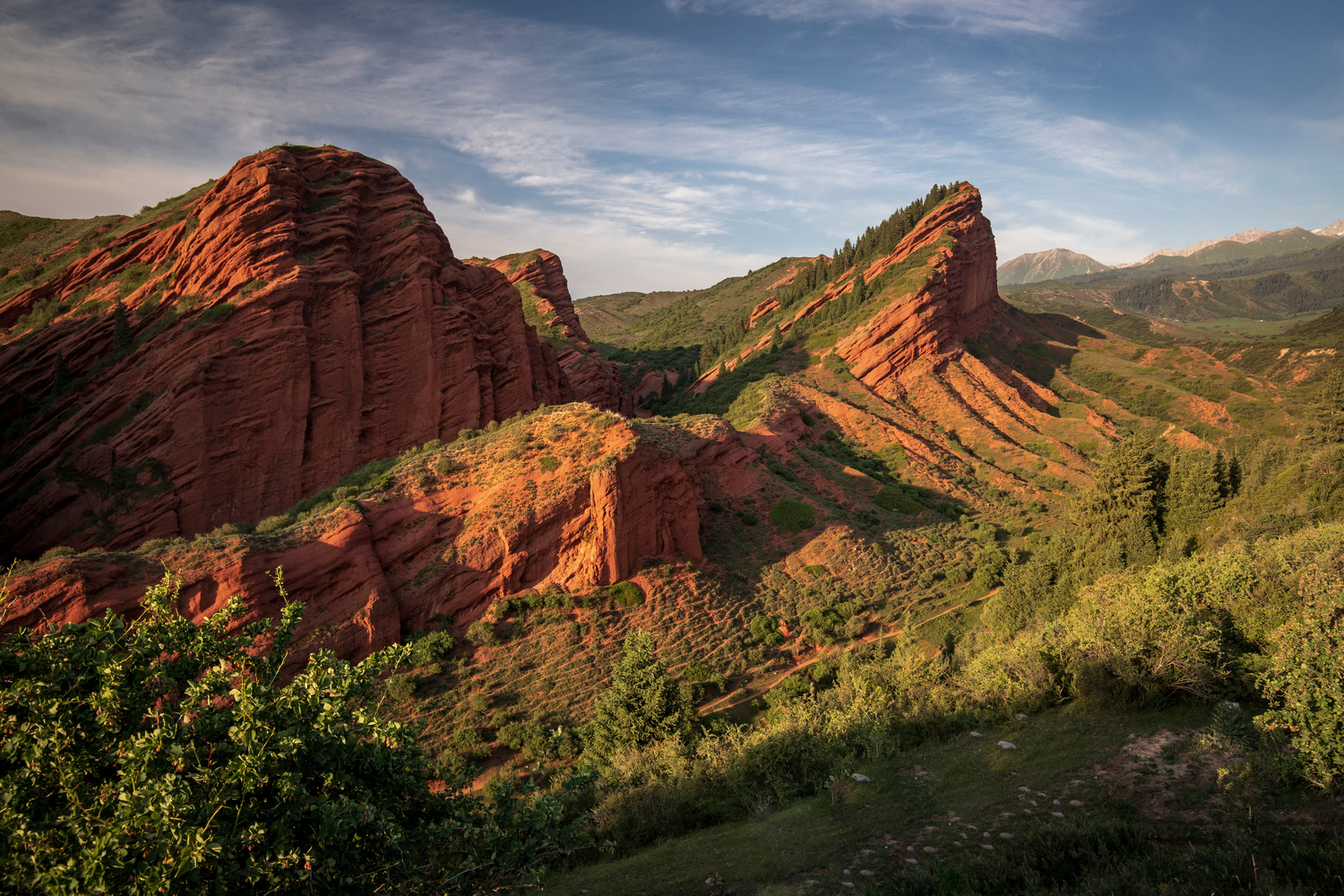 Tienszan (zwany Górami Niebiańskimi) to jeden z najpiękniejszych łańcuchów górskich na świecie. Pejzaże są tu niezwykle urozmaicone, od porośniętych strzelistymi świerkami dolin, przez wysokogórskie stepy ze szmaragdowymi jeziorami, po pokryte wiecznymi śniegami skalne kolosy. To tu znajdują się najbardziej na północ wysunięte siedmiotysięczniki świata: Szczyt Zwycięstwa (7439 m n.p.m.), uważany za trudniejszy do zdobycia od Everestu, oraz idealna piramida Chan Tengri (7010 m n.p.m.).