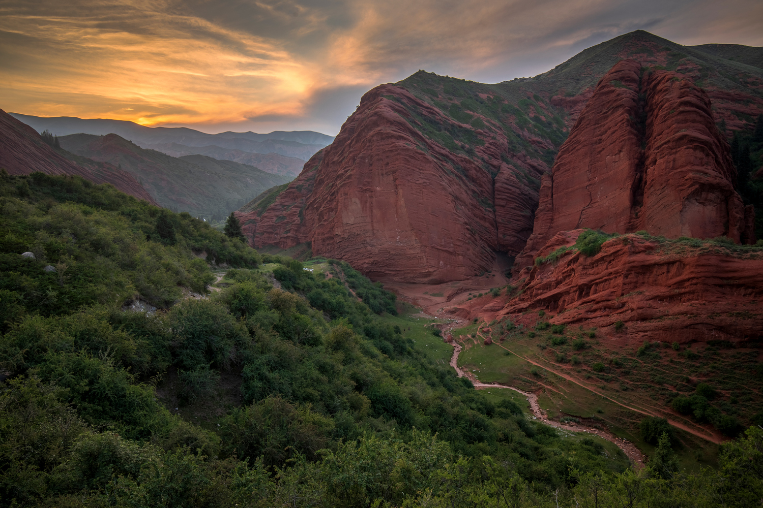 Kirgistan to również „badlands”, czyli suche jak pieprz tereny z silnie zerodowanymi skałami, wśród których tworzą się malownicze kaniony o ciepłych barwach. Kilka z nich odwiedzimy, a po wyjściu z jednego zasadzimy się na zachód słońca z widokiem na jezioro Issyk-kul i różowiejące w gasnącym świetle dnia śnieżne kolosy. Jeden z plenerów zorganizujemy też przy słynnych czerwonych skałach Seven Bulls, gdzie na punkcie widokowym można.. wypić dobrą kawę.