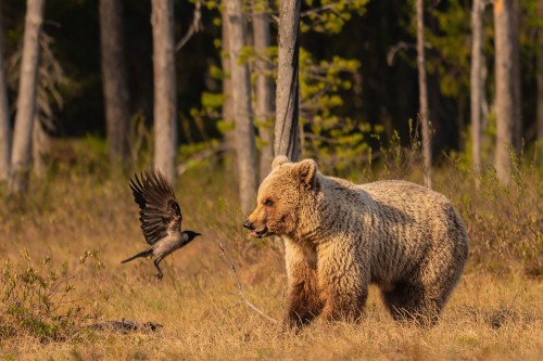 Zdjęcia znane z publikacji w najbardziej prestiżowych czasopismach i magazynach – takich jak GEO, National Geographic, Terre Sauvage czy BBC Wildlife, na których widać dzikie niedźwiedzie brunatne, rosomaki tundrowe i wilki szare były wykonane właśnie tam – w fińskiej tajdze. Jako że miejsce położone jest daleko na północy Europy, pod kołem podbiegunowym, gdzie dzień jest długi, a las przerzedzony, panują tu doskonałe warunki oświetleniowe. Dookoła znajdują się liczne bajorka i mokradła, roślinność runa jest w tym czasie jeszcze zielona, a wełnianka w pełni kwitnienia, co więcej: księżycowa poświata przegląda się w lustrach wodnych. Wszystko to sprawia, że zdjęcia wykonane podczas białych lipcowych nocy na naszej wycieczce fotograficznej do Finlandii zyskują jedyny w swoim rodzaju klimat. Dodajmy, że lipiec to najlepsza pora (pod warunkiem, że dopisze nam szczęście) na sfotografowanie niedźwiedzicy z młodymi i wilków.
